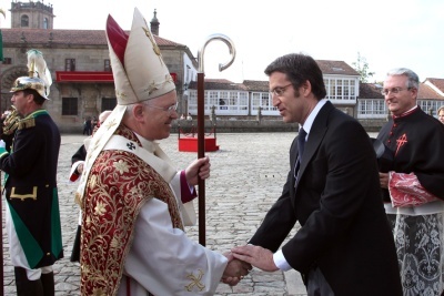 Feijoo saúda ás autoridades relixiosas antes da ofrenda