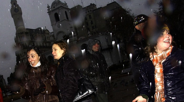 Os porteños e bonaerenses, cando viron que as pingas mudaban en folerpas, comezaron a saír ás rúas cubertos de gorros e abrigos. No barrio de Villa Devoto ducias de persoas poboaron as beirarrúas e o tránsito de coches tivo que interroperse pola presenza da xente que festexaba a curiosidade.