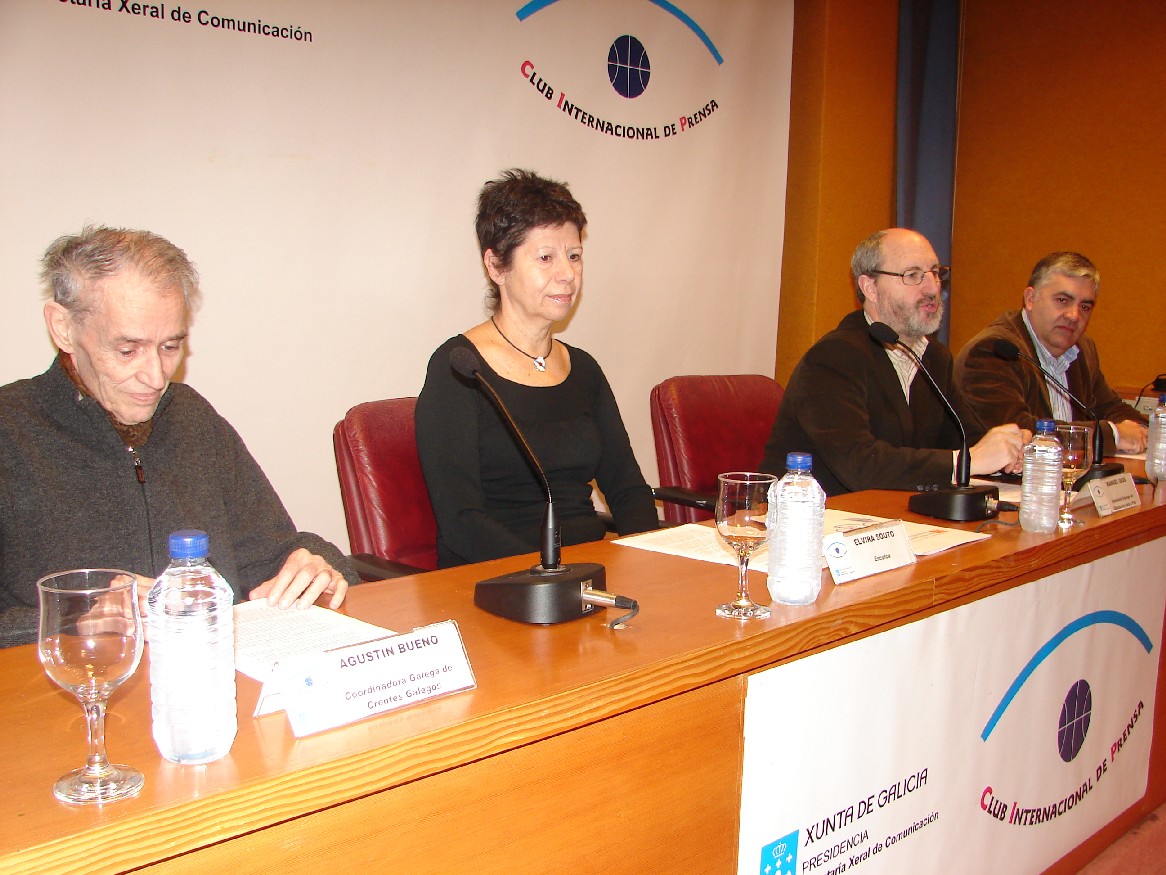 Manuel Dios, do Seminario Galego de Educación para a Paz-Fundación Cultura de Paz; Elvira Souto, do Observatório para a defensa dos direitos e liberdades (EsCULcA); Agustín Bueno, da Coordinadora de Crentes Galegos; e mais Miguel Anxo Fernández, da asociación Xusticia e Sociedade, presentaron este venres en Compostela o Manifesto pola laicidade do Estado Español.