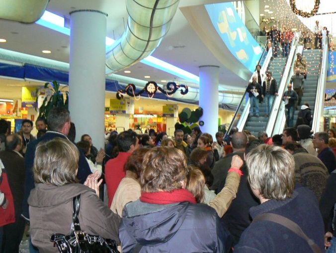 Na segunda feira, a xornada de folga comezou xa dende as 7:00 horas da mañá, coa organización de grupos de piquetes. Un destes grupos decidiu marchar en manifestación dende o Centro Comercial Gran Vía até o Centro Comercial Camelias, na Praza de América, en Vigo. En todo momento houbo unha importante presenza policial.