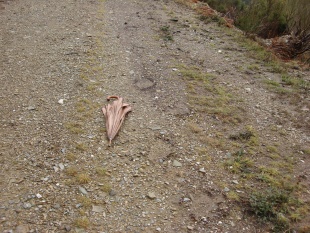 Entre os estremos do paraugas, pode observarse a lonxitude entre as pegadas dun oso